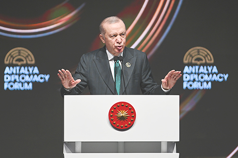 埃爾多安說海灣國家通往公海的通行權不應受限 2026-04-19 03:31:00 ◎ 四月十七日,土耳其總統埃爾多安在土耳其安塔利亞舉行的第五屆安塔利亞外交論壇開幕式上發表講話。稱海灣國家通往公海的通行權不應受到限制。(新華社發 穆斯塔法.卡亞 攝)