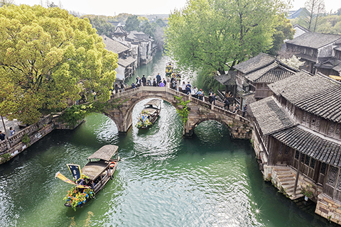◎ 四月一日,烏鎮香市蠶花盛會的巡遊隊伍在古鎮的街市上巡遊表演。