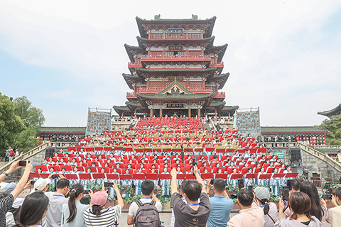 山東榮成:穀雨祭海祈豐收 江西:學子滕王閣下誦讀《滕王閣序》 重慶秀山:職教賦能非遺活態傳承 穀雨時節花開正艶 十項惠台政策「已讀不回」 台產業界疾呼當局「不要再拖」 國產大郵輪「愛達·花城號」 發首航季安排 放寬發芽馬鈴薯進口? 台當局再棄食安底線 官方通報整治形式主義典型問題 內地有地區「購買」異地出口數據 全國人大常委會第二十二次會議 於4月27日至30日舉行 李強:不斷增強能源體系韌性和安全保障能力 江西:學子滕王閣下誦讀《滕王閣序》 2026-04-21 03:30:00 ◎ 四月二十日,江西南昌東湖區,數百名學子身著傳統服飾,在滕王閣前誦讀中國古代文學名篇《滕王閣序》,不少遊客駐足觀看。當日,第五屆全民閱讀大會在南昌開幕,首個全國「全民閱讀活動周」啟動。(中新社記者 劉力鑫 攝)