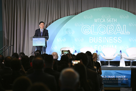 中國駐美大使:讓中美經貿科技合作回歸常識與理性 2026-04-22 03:30:00 ◎ 四月二十日,在美國費城,中國駐美國大使謝鋒在第五十六屆世界貿易中心協會全球商業論壇開幕式上發表主旨演講,讓中美經貿科技合作回歸常識與理性。(新華社記者 李睿 攝)