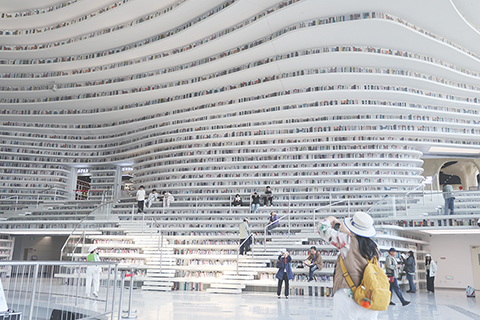 ◎ 濱海文化中心地處天津濱海新區,包括濱海美術館、濱海科技館、濱海圖書館、濱海演藝中心、市民活動中心、文化長廊。濱海文化中心圖書館被譽為「中國最美圖書館」之一,是天津濱海新區的文化地標。建築面積達三點三七萬平方米,藏書超一百萬冊,設有閱覽座位一千二百個。中央穹頂高達二十九點六米,由卅二根白色立柱支撐,頂部巨大的玻璃天窗將自然光線充份引入室內,營造出壯觀通透的視覺效果。館內設有成人閱覽區、兒童閱覽區、數字體驗區、學術報告廳等多功能區域,定期舉辦文化講座、讀書會與主題展覽。獨特的建築美學與豐富的文化內涵,使這裡成為市民文化生活的重要場所和濱海新區文化繁榮的標誌性象徵。圖為四月廿三日,第卅一個世界讀書日,圖書館吸引不少市民遊客前來參觀。(中新社發 毛建軍 攝)