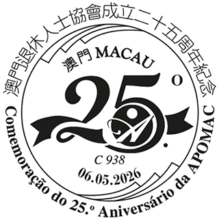 澳退協銀禧紀念戳加蓋 2026-04-25 03:30:00 【特訊】為慶祝澳門退休人士協會成立二十五周年,郵電局特於二零二六年五月六日下午二時至五時,在澳門漁人碼頭展覽廳設置臨時櫃台,為市民提供加蓋「澳門退休人士協會成立二十五周年紀念」紀念郵戳服務。 屆時將派發此活動之紀念封,並出售各類澳門集郵品,歡迎市民參觀選購。◇