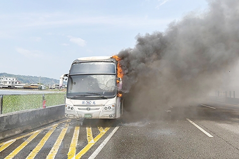 ◎ 四月五日台灣第一號高速公路苗栗路段發生客運火燒車事故,一輛客運行經駛南向一百三十四點五公里苗栗路段,司機突然聽見車內傳出異常聲音,立刻將車輛停靠路肩,並緊急疏散車上九名乘客,該車隨即起火並冒出濃煙。這起事故一度造成雙向車流回堵,警方獲報到場一度封閉中外線車道,目前火勢已撲滅車流也逐漸紓解,全案…