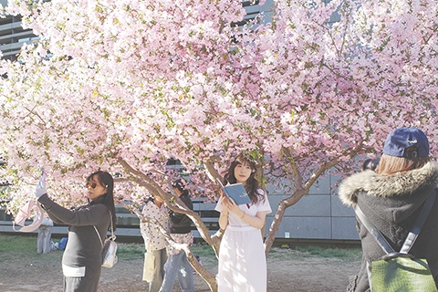 ◎ 四月七日,北京,國家圖書館前海棠花…