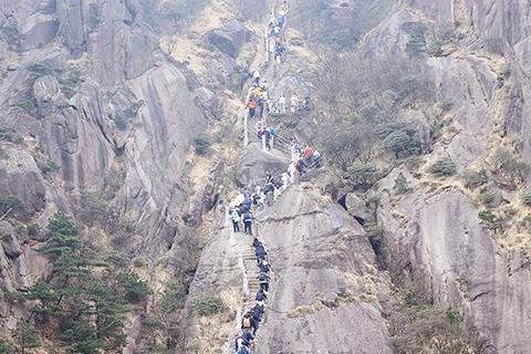 ◎ 四月七日,遊客遊覽天都峰。當日,黃…