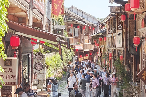 ◎ 四月十七日,遊客在夜色中遊覽龍門石窟。「夜遊龍門」是河南洛陽龍門石窟景區推出的參觀項目,通過對石窟和山體進行燈光亮化,讓遊客在夜間欣賞石刻藝術的獨特魅力。(新華社發 李衛超 攝)