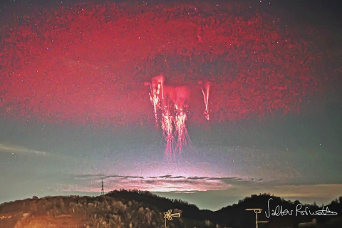 意大利上空的紅色精靈 與圓形精靈閃電