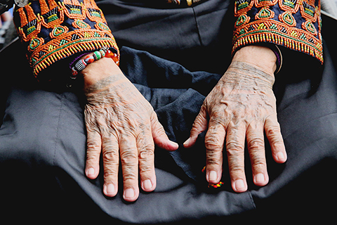 族中的「老公主」如今已八十八歲,拇指上的人形圖案,記錄了她曾經是這個部落的「領導者」,手背的太陽紋則代表她是「太陽的孩子」,以展示她在族中至高的權位,手臂上的格子和曲線則代表家族擁有的土地與河流。