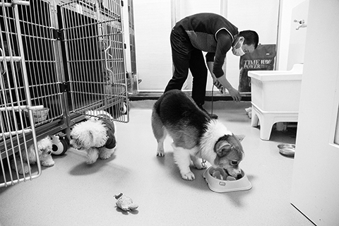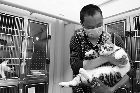 新冠肺炎疫情發生後,武漢不少家庭養的小寵物無法和牠們的主人團聚。武漢默東動物醫院的院長兼主治醫師高進東吃住在該院光谷分院內兩個多月,當起了寵物們的臨時「奶爸」,不離不棄照顧在這裡寄養的八隻狗和十四隻貓,為這些小生命們在疫情期間創造了一個溫暖的家。