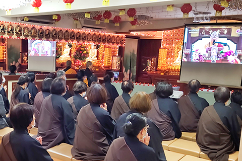 【人間社記者何鳳儀澳門報導】「佛光山2021年禪淨共修獻燈線上祈福法會」3月13日於佛光山大雄寶殿成佛大道舉行,透過電視轉播和網絡直播,讓全球信眾超越地域及時差,共赴法筵。佛光山澳門禪淨中心住持覺仁法師帶領40位信眾,在慧命之家共襄盛舉,為全世界祈福。