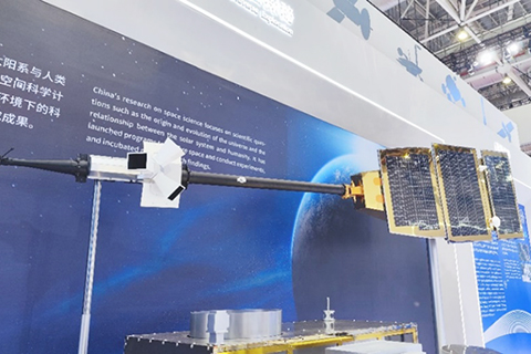 【特訊】第十四屆中國國際航空航天博覽會於本月八日在珠海國際航展中心正式舉行,澳門科技大學月球與行星科學國家重點實驗室亦參與並提供活動展品。是次展出的物品為「澳科一號」衛星A星模型,模型比例為一比二,位於四號館,在國家航天局展廳內。