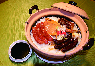 凱旋軒「秋冬滋補宴」,先以鮮甜味美的「上湯美洲龍蝦」為整道佳宴掀開序幕。當中的「古法太史五蛇羹」更是必嚐的菜式之一,主廚以蛇肉切成肉絲,加入花膠、木耳、雞絲、冬菇等食材,並在食用前加上檸檬葉,提升整道菜式的香味。「秘製枝竹黑草羊腩煲」將羊腩烹煮至軟腍,加入枝竹吸收羊肉的精華,配合清潤的馬蹄從而中和羊肉的燥熱,炮製成惹味的羊腩煲。「生炒臘味糯米飯」將臘腸、膶腸、臘肉及臘鴨腿切成粒,令臘味的甘香滲透入糯米飯,啖啖都爽口煙韌、香味濃郁。再配搭「韭菜鵝肝帶子芋盒」、「乾煸雜菌蜜豆煎釀湯鮑魚」等美饌,最後以「桂花燉雪梨雪耳」為整個盛宴畫上完美句號。