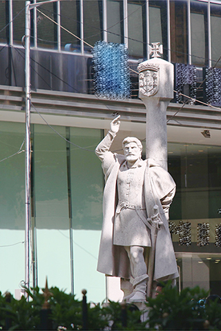舊南灣初級法院大樓對開的一個綠樹成蔭的公園內,豎了一尊葡萄牙人面貌的雕像和石柱,石柱上有葡萄牙的國徽。這雕塑的主人翁名叫歐華利/歐維士(Jorge Alvares)。此石像身長三公尺,連底座高四公尺,於1954年9月16日豎立。這座雕像是葡國雕塑家華斯創作,由葡運來澳安裝。歐華利的一生從未踏足澳門,但被稱為第一位由海路來華的歐洲人,是澳門開埠的領航人,促成了葡萄牙人發現澳門。