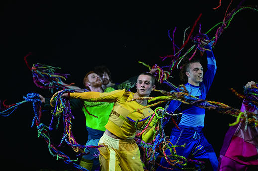另外,整部作品以彩虹般的繩索貫連,該批繩索是由澳洲當地的義工利用收集得來的二手羊毛紗料編織而成,透過社區參與讓藝術拉近當地人與人之間的距離。繩索既用於台上的大型佈景裝置,亦成為舞者的表演道具,時而聚成一股彩色洪流,時而揮舞出不同的波浪圖案,讓編織者與舞者以至觀眾之間產生共鳴。