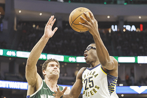 【又訊】美聯社 美國NBA常規賽,密爾沃基公鹿113:122,不敵印第安納溜馬,主場15場連勝紀錄告終;溜馬4名球員得分達雙位數,夏利畢頓貢獻準3雙,取得全隊最多的26分,有11個次助攻及搶到9個籃板;馬杜連有25分,同搶到職業生涯新高的13個籃板;麥干尼爾進帳16分,其中12分在第4節取得,同時交出9次助攻。