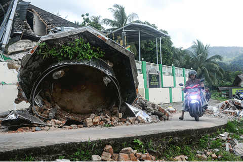 地震頻發 2024-03-25 03:30:00 ◎ 這是三月廿四日在印度尼西亞東爪哇省巴韋安島拍攝的被地震損毀的清真寺建築。 印度尼西亞東爪哇省海域廿二日發生多次地震,影響到東爪哇省部份城市和地區。(新華社發 薩赫蘭 攝)