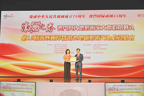 【專訪】為慶祝中華人民共和國成立七十五周年、澳門回歸二十五周年和深化澳門與內地文化藝術交流合作、增進澳門同胞的愛國意識、促進澳門文化與創意產業聯動發展,由澳門中華文化聯誼會、澳門文化界聯合總會、中國文藝志願者協會、雲南省文學藝術界聯合會和中國戲劇曲藝家(澳門)聯誼會等聯合主辦的「二0二四『濠江之春』澳門與內地藝術家大聯歡開幕式、第十五屆海峽兩岸暨港澳地區藝術論壇歡迎宴會」昨(六月二十六日)晚假永利皇宮宴會廳舉行,各有關方面人士數百人出席,場面隆重、節目精彩、氣氛歡樂。