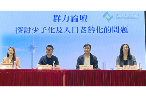 【專訪】群力智庫中心昨日舉行論壇,邀請立法議員梁鴻細、街總社會服務辦公室副總監張婉思、澳門坊眾學校教導主任黃國威齊探討少子化及人口老齡化問題。