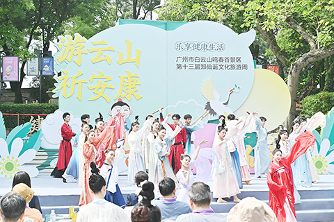 第十三屆鄭仙誕文化旅遊周啟動 2024-08-25 03:30:00 ◎ 八月廿四日,第十三屆鄭仙誕文化旅遊周在廣州市白雲山風景名勝區山頂廣場啟動。「鄭仙誕」被譽為「廣州第一誕」,是廣州市非物質文化遺產項目。圖為啟動儀式上的漢服表演。(中新社記者 陳楚紅 攝)