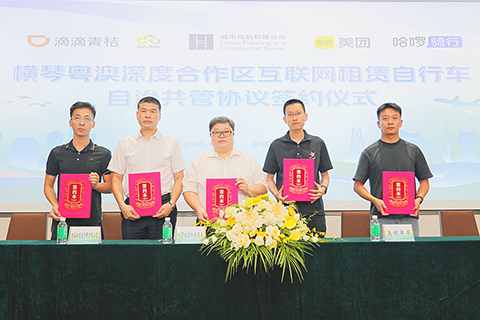 【記者陳藝珠海報道】九月二日,橫琴粵澳深度合作區城市規劃和建設局與珠海公交自行車、美團單車、滴滴青桔和哈啰騎行共同簽署了《橫琴粵澳深度合作區互聯網租賃自行車自治共管協議》(以下簡稱《自治共管協議》),自此,深合區步入共享單車「共治共管」治理新階段。
