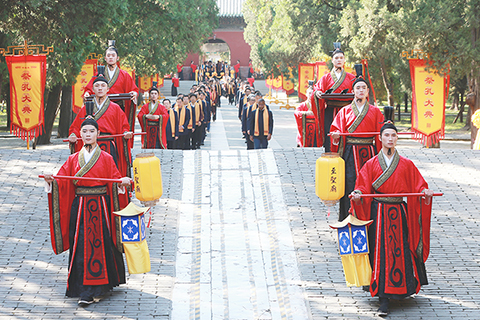祭孔大典是專門祭祀孔子的大型廟堂樂舞活動,集樂、歌、舞、禮為一體,也稱為「丁祭樂舞」「大成樂舞」。祭孔大典非遺傳承人、鳴讚官孔令凱表示,祭孔對於現代人來說具有符號化的文化傳承意義。「在祭孔的過程中,人們與聖賢進行近距離的『心靈鏈接』,更加能夠體會到古人為道不易的責任感。」◇