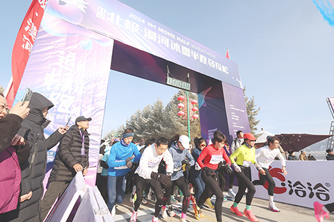 【中新社漠河十一月二日電】(記者 姜輝)二日,「追著極光跑」二0二四中國北極.漠河冰雪半程馬拉松賽在黑龍江省漠河市北極村鳴槍開跑。作為中國最北的冰雪馬拉松賽事,此次比賽吸引了國內外二千餘名馬拉松愛好者參賽。