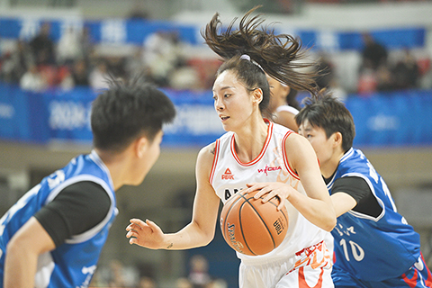 中國女子籃球聯賽 黑龍江上東隊主場戰勝合肥文旅隊 2024-11-17 03:30:00 ◎ 十一月十六日,合肥文旅隊球員邢金博(中)在比賽中突破。當日,在二零二四-二零二五賽季中國女子籃球聯賽(WCBA)常規賽第一輪比賽中,黑龍江上東隊主場六十七比五十九戰勝合肥文旅隊。(新華社記者 張濤 攝)