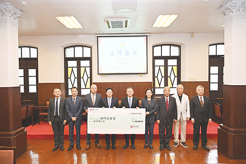日前,中國銀行澳門分行副行長葉兆佳、副總裁陳榮達等一行四人到訪同善堂,並即席舉行捐贈善款支票儀式,向同善堂捐贈三十萬澳門元作為慈善經費,由該堂主席崔世平、值理容永恩、李子豐、陸永根、李傑興代表接收。崔世平感謝中國銀行澳門分行多年來對同善堂的支持,並向該行一眾負責人介紹該堂今年一百周年的免費教育發展歷史,以及藥局的養生湯包、茶包、推廣中醫藥文化及「藥食同源」文化。
