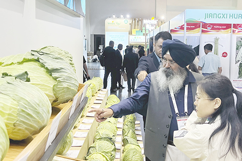 ◎ 十二月三日,在第二十九屆亞洲種子大會上,參會企業代表在了解蔬菜新品種相關情況。(新華社記者 羅江 攝)
