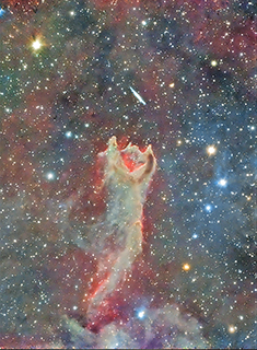 十多年前去澳洲拍攝深空星體已經很想拍攝這個目標,可惜當時沒能力駕馭南在南半球使用長焦拍攝,一般400-500mm的鏡子拍攝這目標出來也非常細小,今次是第一次帶C5(配合f/6.3reducer)去拍攝,配合一吋sensor的183MCPro,等效焦距來到了約2,450mm。今次終於也成功拍下。這個好像是「一條星際巨蟲正準備吞噬上方的PGC21338星系」的畫面更是南半球星空的一個很特別的印記。