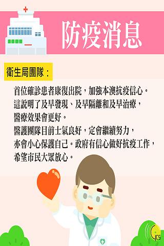 政府昨日下午在每日例行記者會上播放該女子的錄音,她表達了對醫護人員無言感激之情,「我感覺溫暖,特別感動。」又呼籲民眾勿恐慌。另一方面,衛生局局長李展潤表示,該名康復者的治療費共三萬四千元,離澳前未付款,她目前正申請豁免費用,如不獲審批將會被追收所有醫療費用。