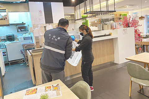 市政署持續派員巡查並監察本澳各類食品生產經營場所及食肆等,保障食用安全和場所設施符合發牌條件。在新冠肺炎下,亦加強宣導工作,除疫情初期已向食品從業人員派發並講解《防範新型冠狀病毒肺炎的食安建議》,提醒注意場所環境及個人衛生,加強業界食品安全及衛生防疫意識。日前,亦向飲食場所派發衛生指引海報,加深食肆人員及市民對個人防護的認識,亦呼籲食肆人員於工作期間應佩戴口罩,共同做好防疫工作,將病毒在社區傳播的風險降低。