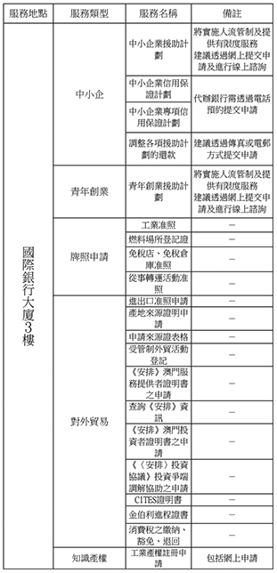 經濟局於本月十七日至二十一日期間將提供以下對外服務: