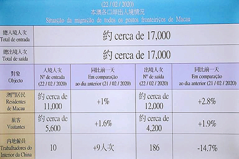另外,警方指出本澳前天的總出入境人次三萬四千人次,微降百分之零點五。其中,各口岸入境及出境,都各有一萬七千人次。◇