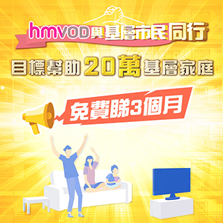 新冠肺炎疫情持續擴散,本地影視點播平台hmvod繼本月初請自我隔離人士免費睇戲一個月後,因應教育局昨日公佈全港中、小學校會延至復活節假期後、於四月二十日才分階段復課,hmvod決定由即日(二月二十六日)起啟動「與基層巿民同心抗疫」,目標向二十萬個基層家庭提供免費睇戲三個月,讓市民留在家中亦可睇戲娛樂。