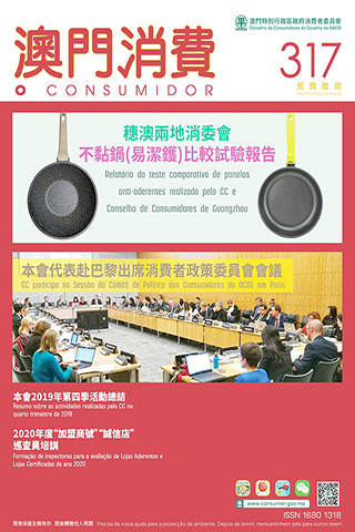 第三百一十七期《澳門消費》的電子版已上載到消委會網頁(www.consumer.gov.mo)及微信(WeChat)帳號供市民下載及瀏覽。