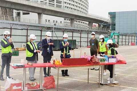 在防疫期間,相關的動工儀式於工地現場簡單進行,其後現場正式開展土地平整及樁基礎工作。項目團隊在施工過程中會密切留意工地的防疫及衛生情況,並會參考政府頒佈的各項公共防疫政策要求,制定有關項目工地之防疫措施,包括工程人員進入工地必須量度體溫及佩戴口罩,工地會定時進行消毒清潔,在疫情期間人員必須留澳居住等。