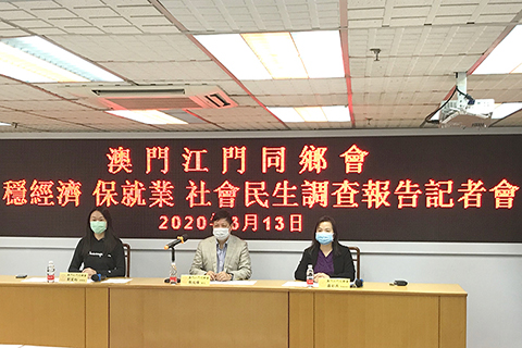 【專訪】為繼續抗擊新冠肺炎,同時做好復工復産準備,如何做到兩者兼顧,澳門江門同鄉會就有關問題以電話訪問一千零十六名會員,了解他們對疫情期間本澳「穩經濟、保就業」措施的意見及訴求。希望集合大家意見解決問題。江門同鄉會昨就調查報告作介紹,由會長甄瑞權、副理事長羅彩燕主持。