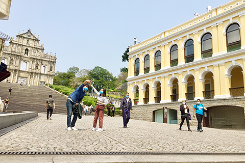 昨日周六,市中心旅遊區環境清幽,行人十分休閒,有市民笑稱澳門真正達成了世界旅遊休閒城市定位,現在欠的是最重要的元素──旅客。◇