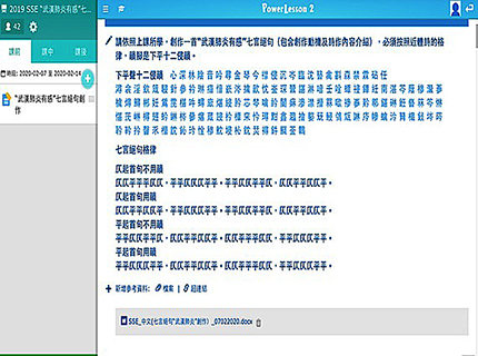 老師說明古詩創作要求,必須按照近體詩的格律,韻腳是下平十二侵韻,並提供學生創作古詩下平聲十二侵韻的候選字:侵尋潯林霖臨針箴斟沈深淫心琴禽擒欽衾吟今襟金音陰岑簪琳琛椹諶壬任黔歆禁喑森參淋郴妊湛(下平:十二侵),讓學生創作一首「新冠肺炎有感」七言絕句(需包含創作動機及詩作內容介紹)。同時老師運用電子學習平台與學生進行互動討論,適時跟進學生學習進度,同時在班群討論「新冠肺炎有感」七言絕句創作及相關海報情況,最後學生透過eClass PowerLesson2平台呈交古詩創作及海報。最後作品經老師點評,學生透過Facebook專頁平台(Facebook專頁︰培正中學高一正中文詩詞)發表古詩創作與海報設計,既回應社會疫情,也能學以致用,發揮正能量。