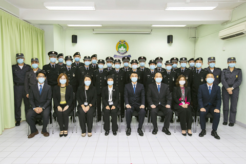 【特訊】懲教管理局於昨日下午在路環監獄為十九名副警長舉行就職儀式,由程况明局長主持及監誓,並在呂錦雲副局長、吳銳安獄長、余珮琳院長以及鄧敏心代廳長的見證下宣誓就職。程局長在儀式上表示,隨著本澳社會迅速發展,懲教工作亦面對各種新的問題和挑戰,懲教管理局必須與時並進,全面貫徹特區政府「協同奮進.變革創新」的施政理念,實現懲教管理現代化。是次晉升,進一步完善獄警隊伍梯隊建設,以及強化了獄警的骨幹力量。程局長期望各位新晉的副警長不忘初心,在新的工作崗位上不懼挑戰,盡忠職守,勇於創新,為優化獄政管理作出應有的貢獻。最後,程局長感謝局方全體人員自新冠病毒肺炎疫情以來,在防疫抗疫工作所作出的努力和奉獻,並勉勵人員繼續堅守崗位,團結一心做好抗疫工作,確保監獄和少年感化院的安全,以及在囚人和院生的身心健康。