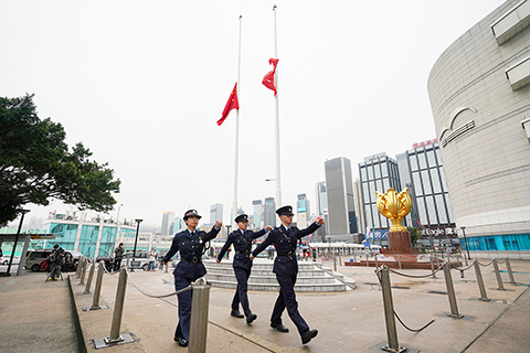 同日上午,中央政府駐香港特區聯絡辦公室、外交部駐香港特區特派員公署、中國人民解放軍駐香港部隊大廈均下半旗;金紫荊廣場、香港警察總部、郵政總局等多個地點亦下半旗響應。