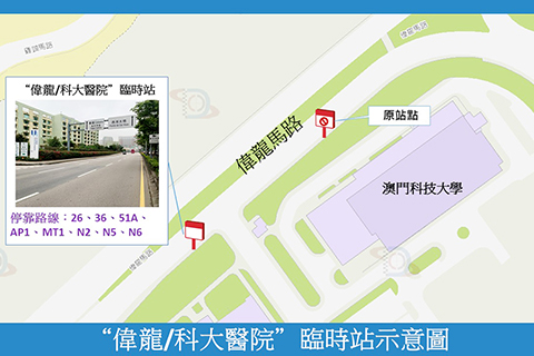 【特訊】基於路氹大型項目的用電需求增加,澳門電力股份有限公司進行電纜鋪設工程,配合施工需要,機場圓形地、近機場圓形地一段機場大馬路,以及近機場圓形地一段偉龍馬路,4月8日(周三)至6月14日(周日)實施有限度通車。另外,4月8日(周三)日間線首班車起至4月20日(周一),「偉龍/科大醫院」巴士站往路氹連貫公路圓形地方向臨時遷移約110米,供26、36、51A、AP1、MT1、N2、N5及N6路線巴士停靠。交通事務局及澳門電力股份有限公司呼籲公眾留意。◇