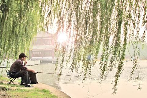 「春風楊柳萬千條,六億神州盡舜堯」。一場大疫,全民戰鬥,柳色滿中華。這是一個不屈的春天,歷史會銘記。塘邊一笠翁雕像,右腕微抬,呈釣魚狀,可手中並無釣竿,近旁有一線細細長長的綠絲絛垂下來,幾乎垂到水面,將一枝滿滿的綠色輕輕抖入水中。笠翁,羞與柳色對韻。我低頭沉思,忽然間察覺塘內浮子輕動。我迅速一甩釣竿,哈哈,空空如也,竟然掛到近旁的柳條上,沒有釣到魚,卻釣到了柳色的新綠,釣到了盎然招搖的春光。想必水中的那條偷溜的魚,此刻也一定滿臉春色!筆行至此,垂柳似乎輕搖,發出中國人戰役勝利的笑聲!◇