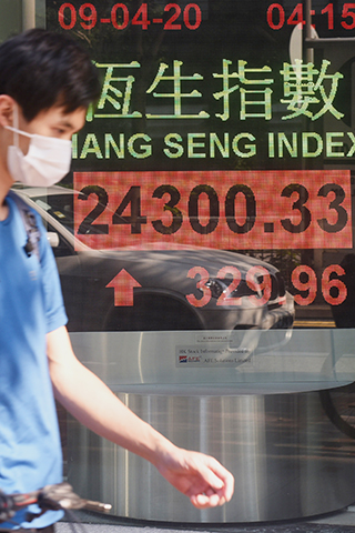 【香港中通社4月9日電】(記者王姝)憧憬各地政府出招刺激經濟,港股於復活節長假期前反彈,尾市跟隨外圍發力,以近全日高位收市。恆生指數9日收報24300點,成交回升至938.9億元。