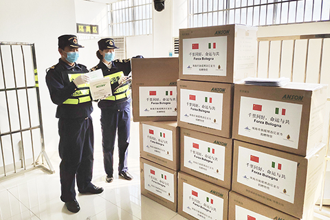 珠四萬口罩捐意大利 2020-04-10 03:30:00 【記者陳藝珠海報道】昨日下午,拱北海關所屬九洲海關在出境郵遞貨運管道驗放捐贈意大利醫用口罩四萬隻。 據了解,該批口罩為珠海市政府捐贈,用於支援意大利新冠肺炎疫情防控工作。該關通過加強人工審單及查驗,嚴格把好資料證書審核關及口罩品質安全關。同時,安排專人專崗對接,全力保障出口防疫物資順利通關。◇