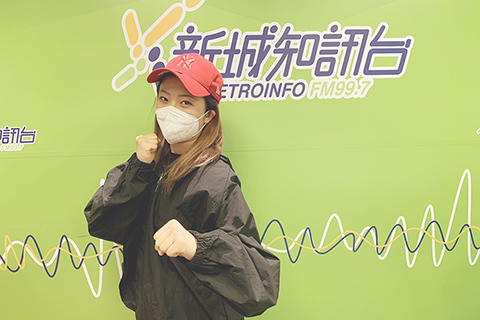 黎美言(Winkie)到新城電台接受訪問,除了戴口罩之餘,更穿着有透明面罩帽的上衣。她表示,擔心疫情,故外出時都要做足防疫措施,之前口罩存量不夠時亦避免出街。