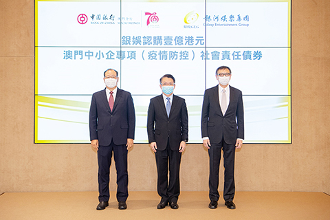在疫情開始至今,銀娛一直致力與社會各界凝心聚力、應對挑戰,到目前為止,捐出超過澳門幣一億元以支持防疫、抗疫工作,另外以一億港元認購社會責任債劵。當中包括:透過中央人民政府駐澳門特別行政區聯絡辦公室的協調下,向湖北省捐出澳門幣二千萬元,以支援該地區就應對新型冠狀病毒的緊急防控及救援工作,同時捐出澳門幣五百萬元,支援本澳新型冠狀病毒的防疫工作;向澳門特別行政區政府、珠海市與橫琴新區政府合共捐贈一百萬個口罩,並為本澳多個社服機構、學校提供適切的防疫支援;此外,銀娛更投放了一億港元,認購中國銀行澳門分行發行之「中小企業專項(疫情防控)社會責任債劵」,以協助緩解本地企業在疫情下所受到之影響。銀娛將繼續秉承「取諸社會,用諸社會」的宗旨,與各持分者保持緊密聯繫,以實際行動與各界共同應對疫情所帶來的挑戰。◇