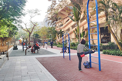 綠化方面,園內除保留原有的四十五棵細葉榕等樹木外,還加種十棵假蘋婆以增加園內樹蔭,另種植賞花植物桃金孃、蜘蛛蘭,香花植物米仔蘭,賞葉植物鴨腳木、花葉鴨腳木等,豐富整個園區的植物種類,讓市民在使用公園運動設施時,亦可賞花聞香。市政署會持續優化休憩設施,為市民提供舒適的休閒活動空間。◇