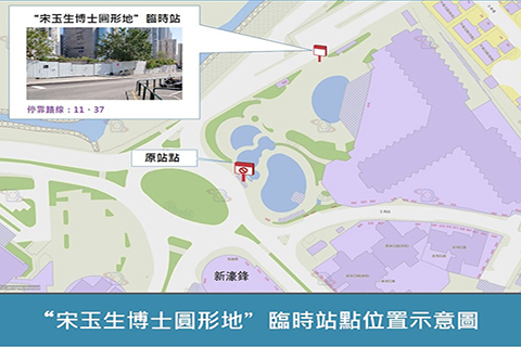 【又訊】配合私人公司拆卸外牆廣告招牌,5月11日(周一)首班車起,氹仔「宋玉生博士圓形地」巴士站臨時停用,多條途經該站的巴士路線停靠站點作出調整,直至5月23日(周六)工程結束,詳情請參閱下文。交通事務局呼籲乘客留意。